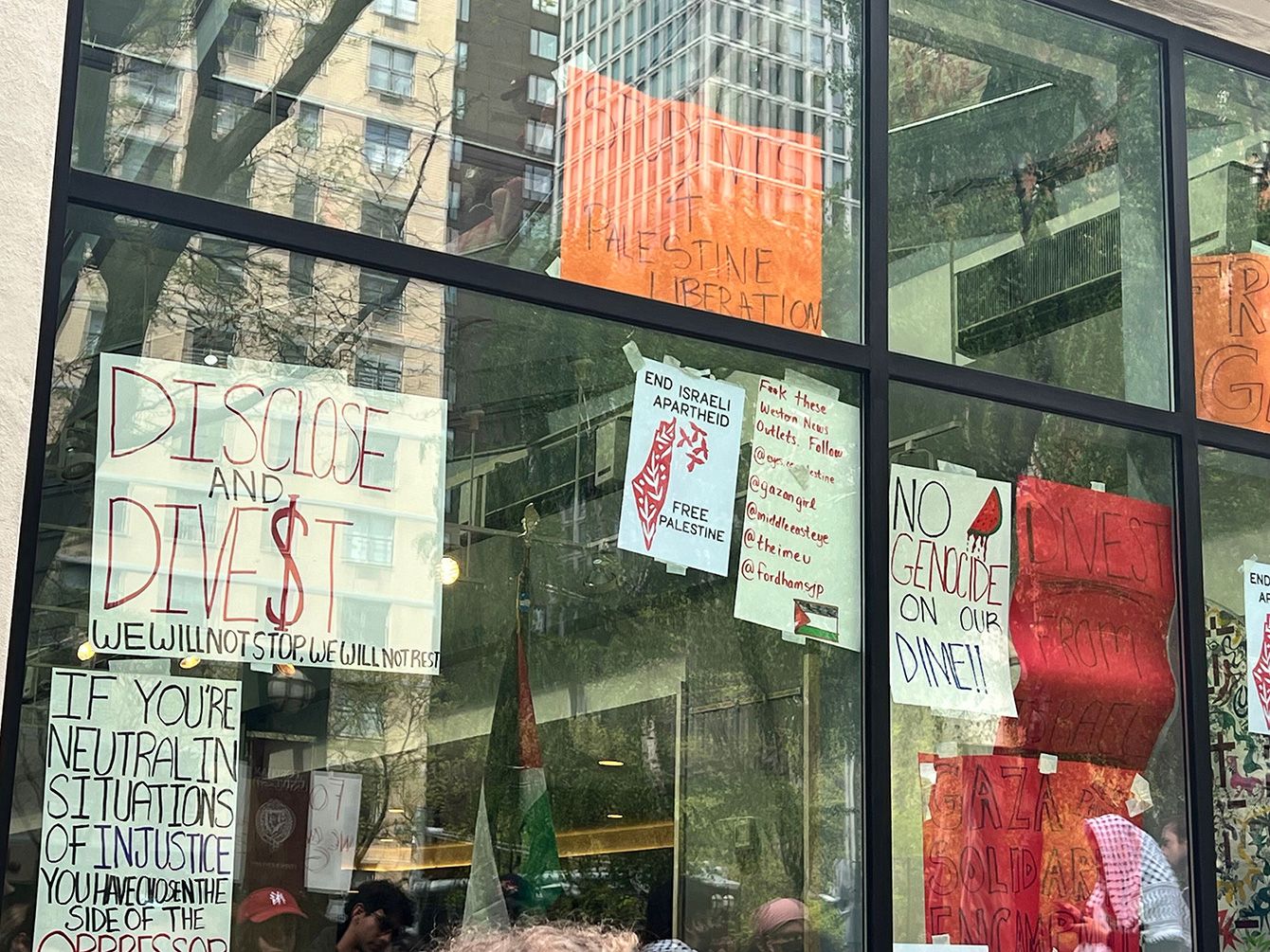 フォーダム大学のデモの様子。コロンビア大など名門大学での抗議運動を皮切りに、その動きは全米に広がっている