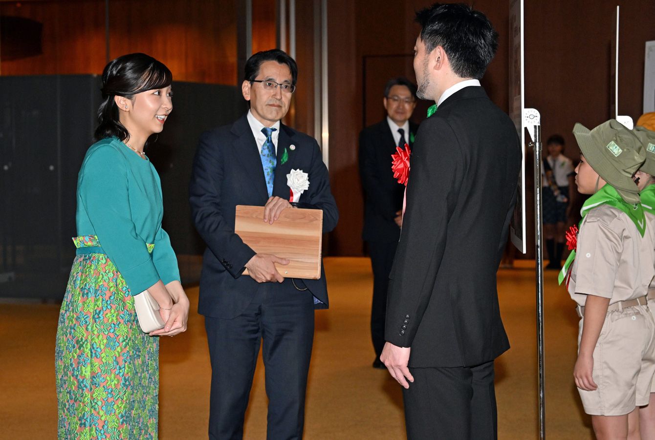 第33回森と花の祭典「みどりの感謝祭」で出席者らに声を掛けられる秋篠宮家の次女佳子さま=2024年05月11日、東京都千代田区[代表撮影]