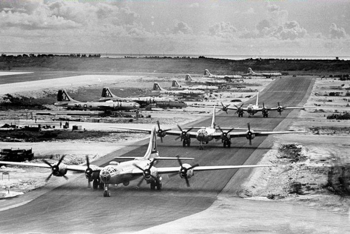 テニアン島の飛行場から次々と出撃するB29(写真=米国政府/PD US Air Force/