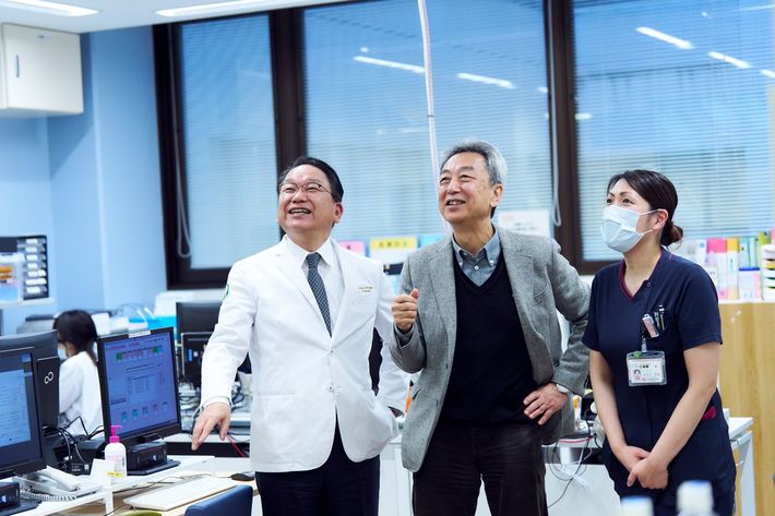 鳥取大学医学部附属病院の武中篤病院長(左)と建築家の竹山聖さん