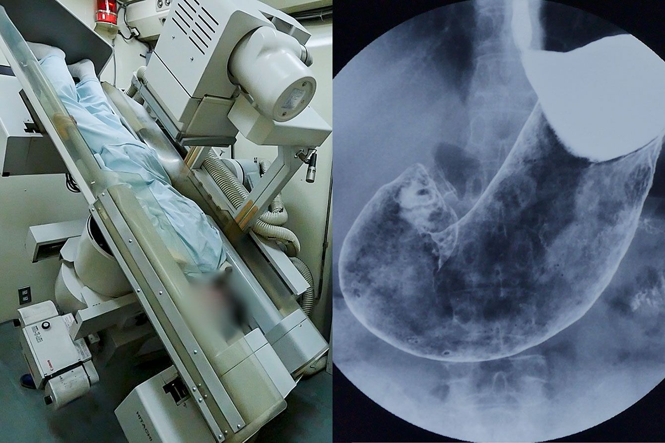 胃がんバリウム検査の撮影場面
