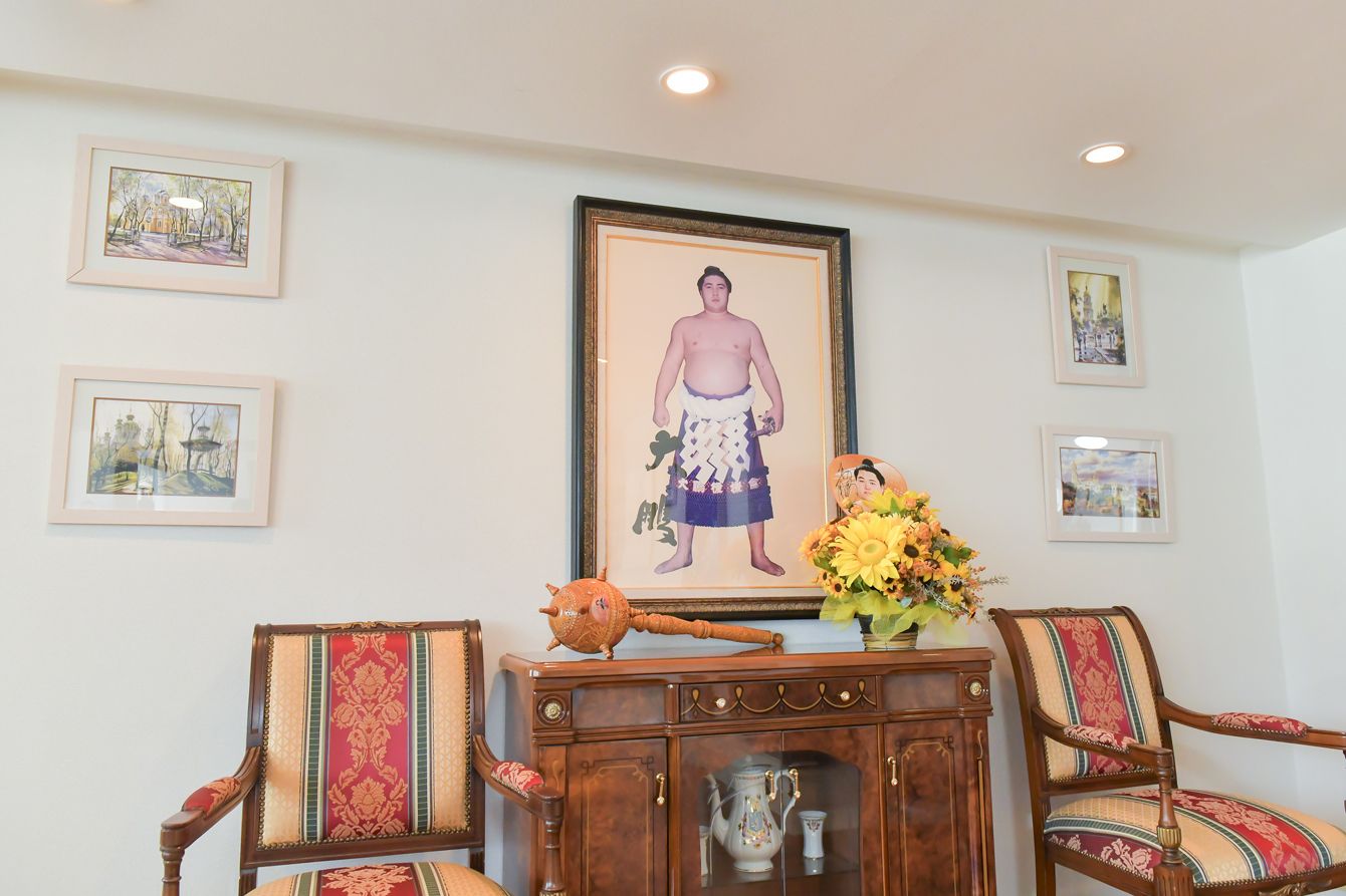 大使館に飾られた第48代横綱・大鵬の写真。ウクライナ人の父親を持つ