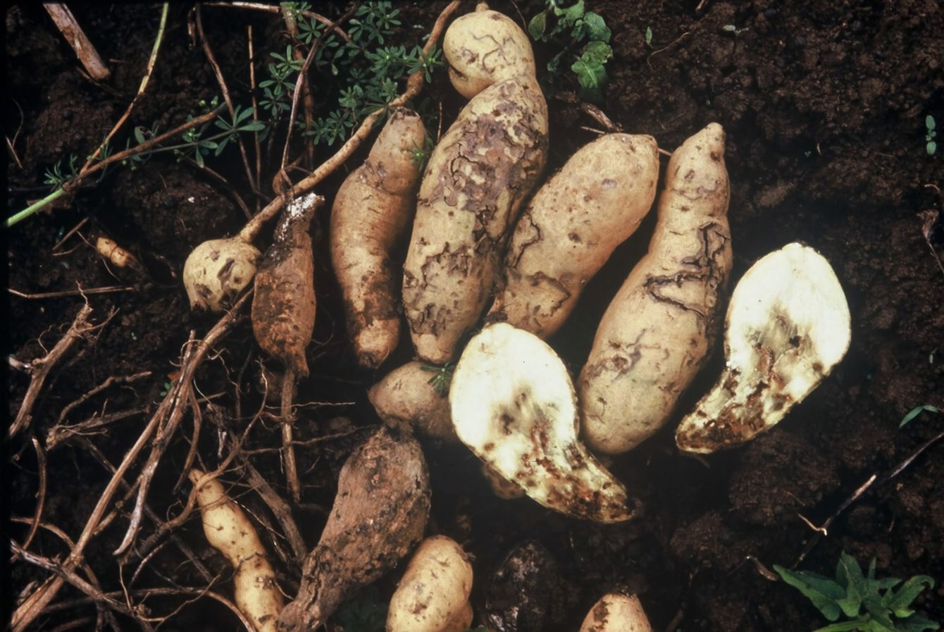 イモゾウムシに加害されたサツマイモ