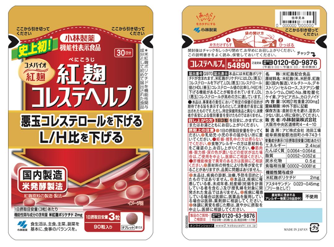 健康被害が出た「紅麹コレステヘルプ」のパッケージ