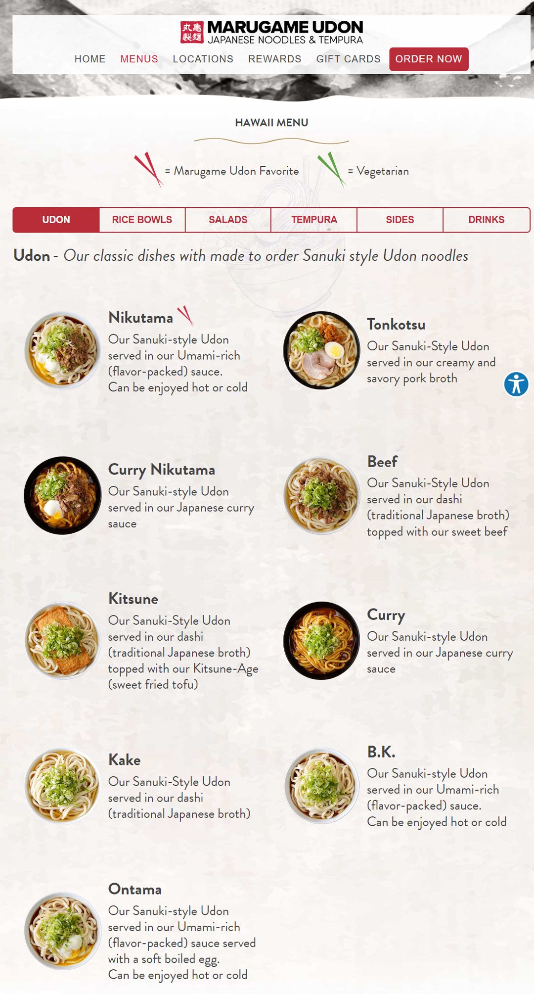 「UDON」のメニュー