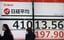 日経平均株価4万1000円台を示すモニター=2024年3月22日午前、東京都中央区