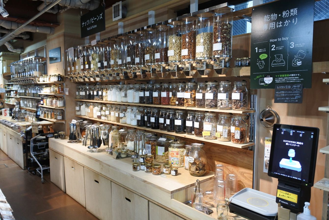 ナッツや豆類も種類が豊富。専用のはかり(右手前)で量って購入する