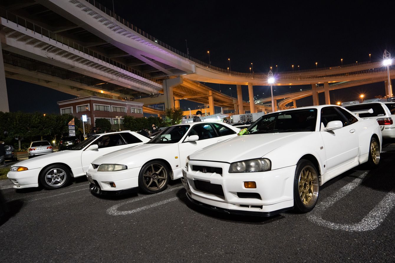 これらは3台とも外客に人気のレンタカー。このスカイラインGT-Rに乗って大黒PAに自ら運転してゆくことが海外の車好きにはぜひかなえたい「夢」なのである