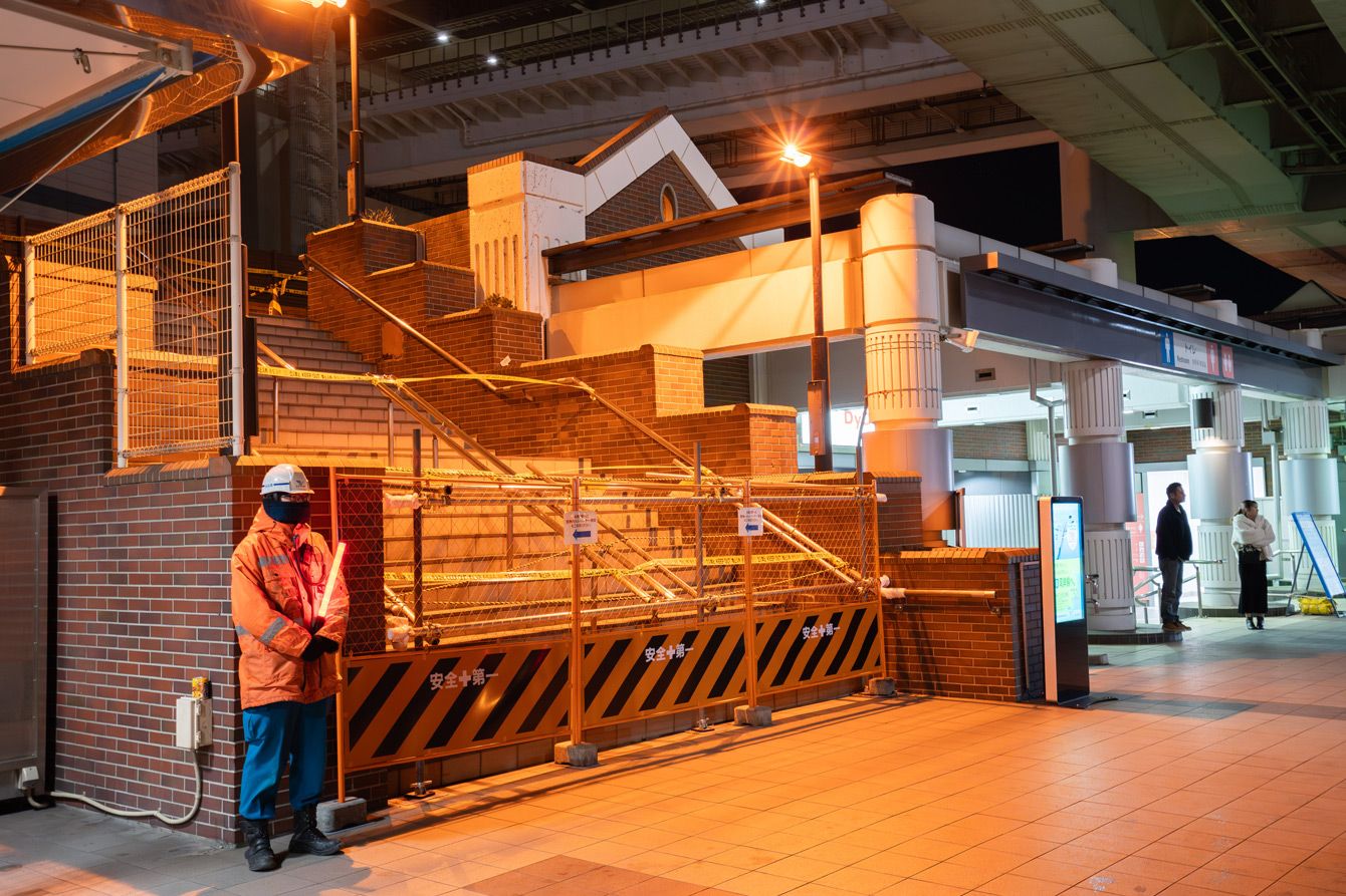 ドリフト見物できないように階段下からバリケードを設置したが効果なし…