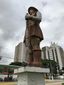 イビラプエラ公園のバンデイランテス像は、過去の忌まわしい奴隷狩りの象徴としてたびたび落書きがされている