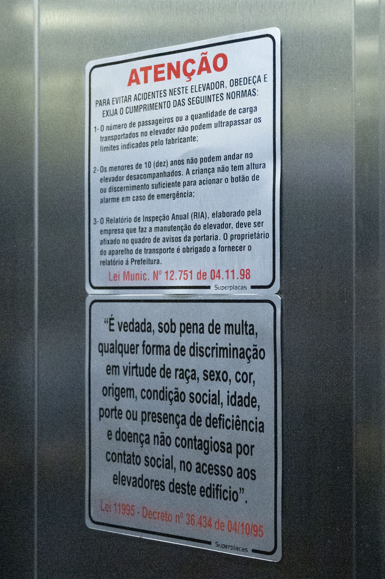 筆者の暮らすアパートのエレベーター内にも「差別は罰金」と明記されている(筆者撮影)