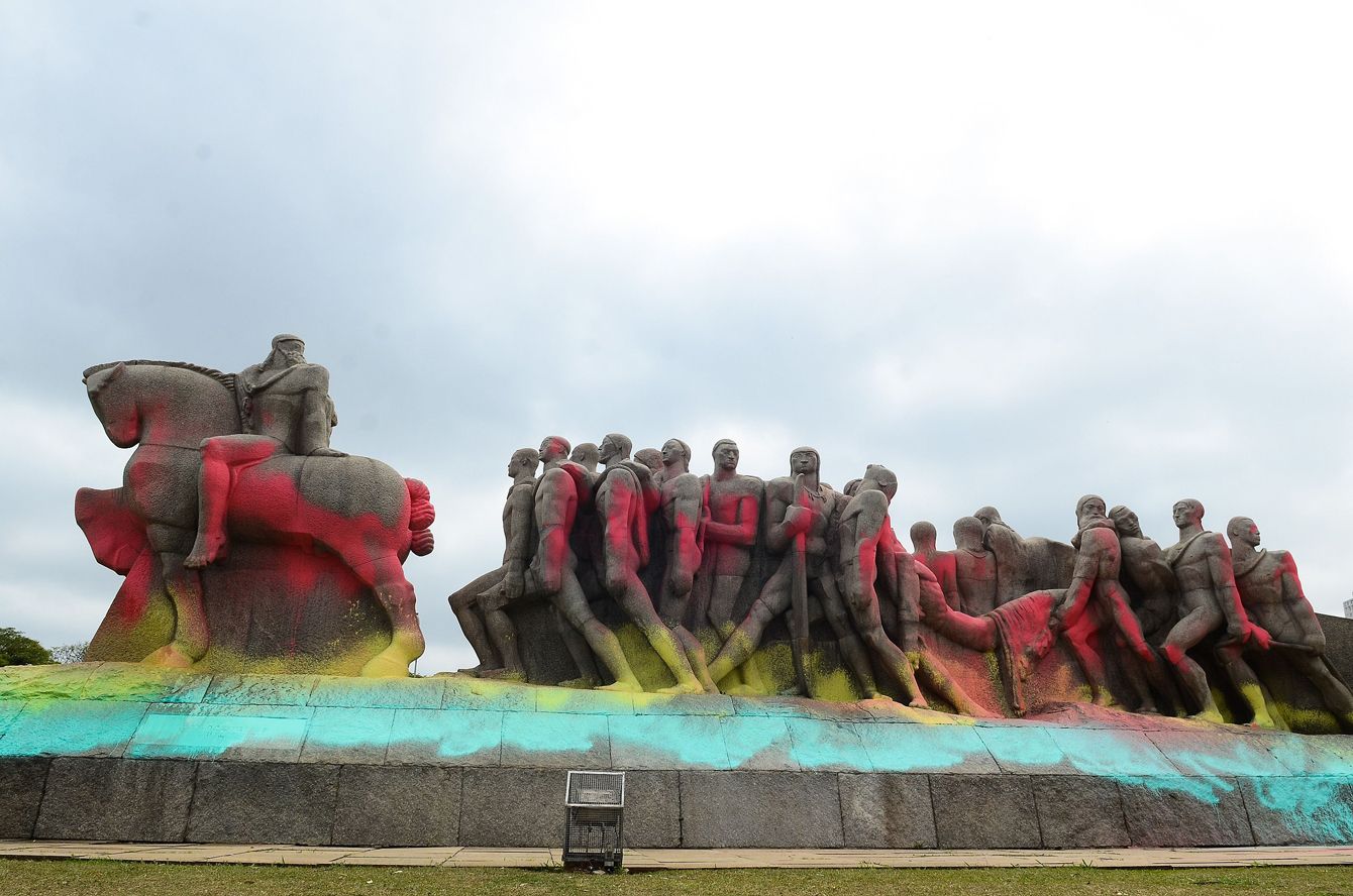 イビラプエラ公園のバンデイランテス像は、過去の忌まわしい奴隷狩りの象徴としてたびたび落書きがされている