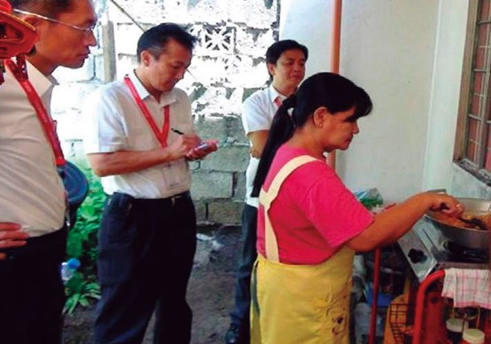 中国で新製品出荷に立ち会う藤江氏(左)。次に赴任したフィリピンで、問題に直面する。