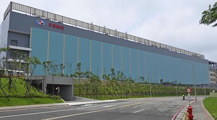 宮城県大衡村に新設される半導体工場のモデルとなる台湾PSMCの新工場=2024年5月2日、台湾北西部苗栗県