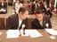 談笑する山梨県の長崎知事(左)と鈴木知事