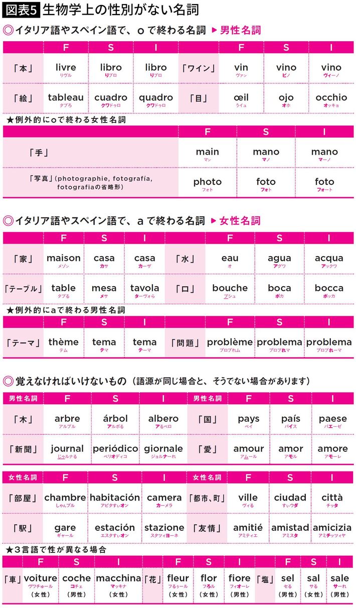 F=フランス語、S=スペイン語、I=イタリア語(『