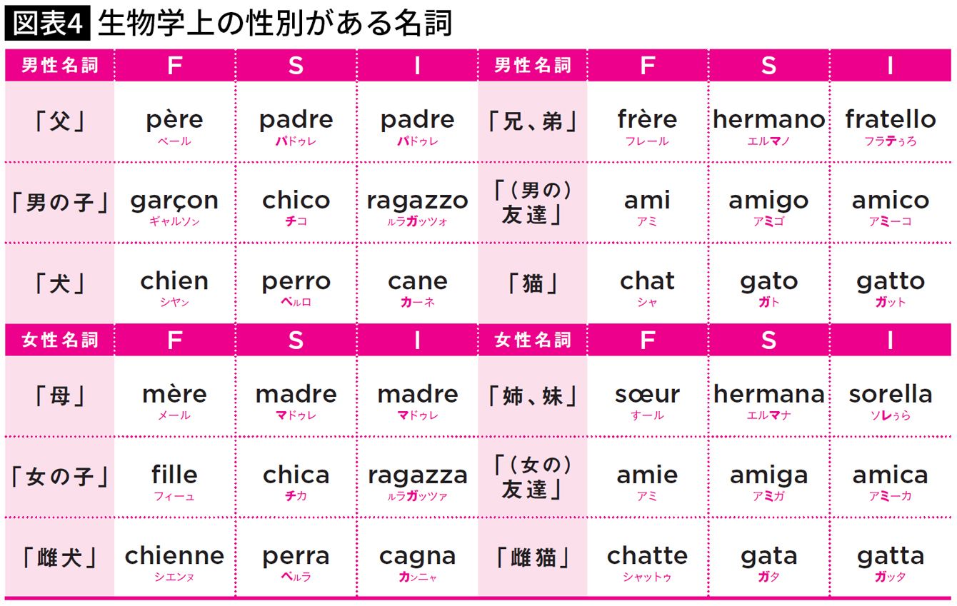 F=フランス語、S=スペイン語、I=イタリア語(『