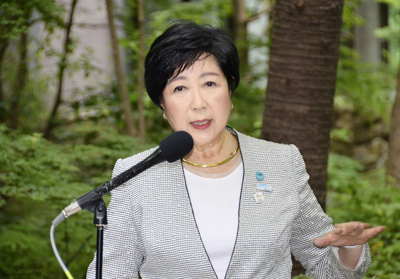 小池都知事は「EV原理主義」に取り憑かれている(東京都知事の公務後、報道陣の取材に応じる小池百合子氏、2024年6月20日)