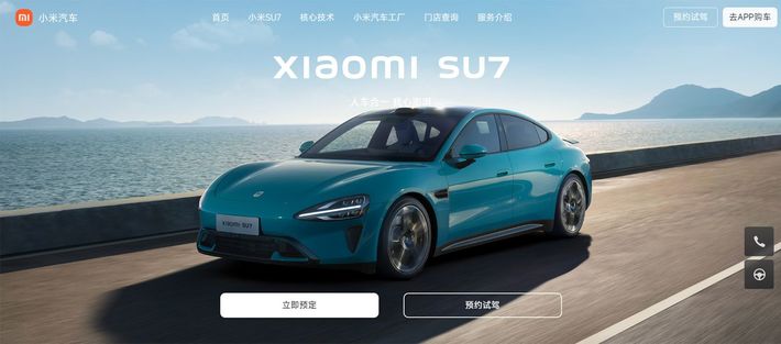 2024年4月25日、北京で開催された北京モーターショーで展示された電気自動車「シャオミSU7」モデル。