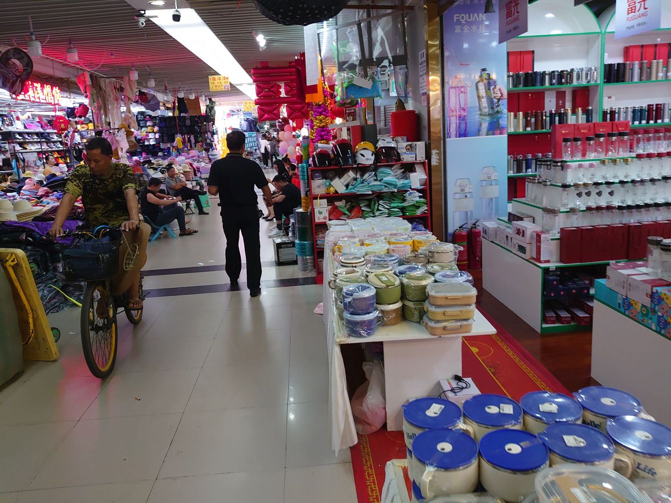 中国の卸売市場にて。遊んでいるわけではなく真面目に移動に使っているのだ