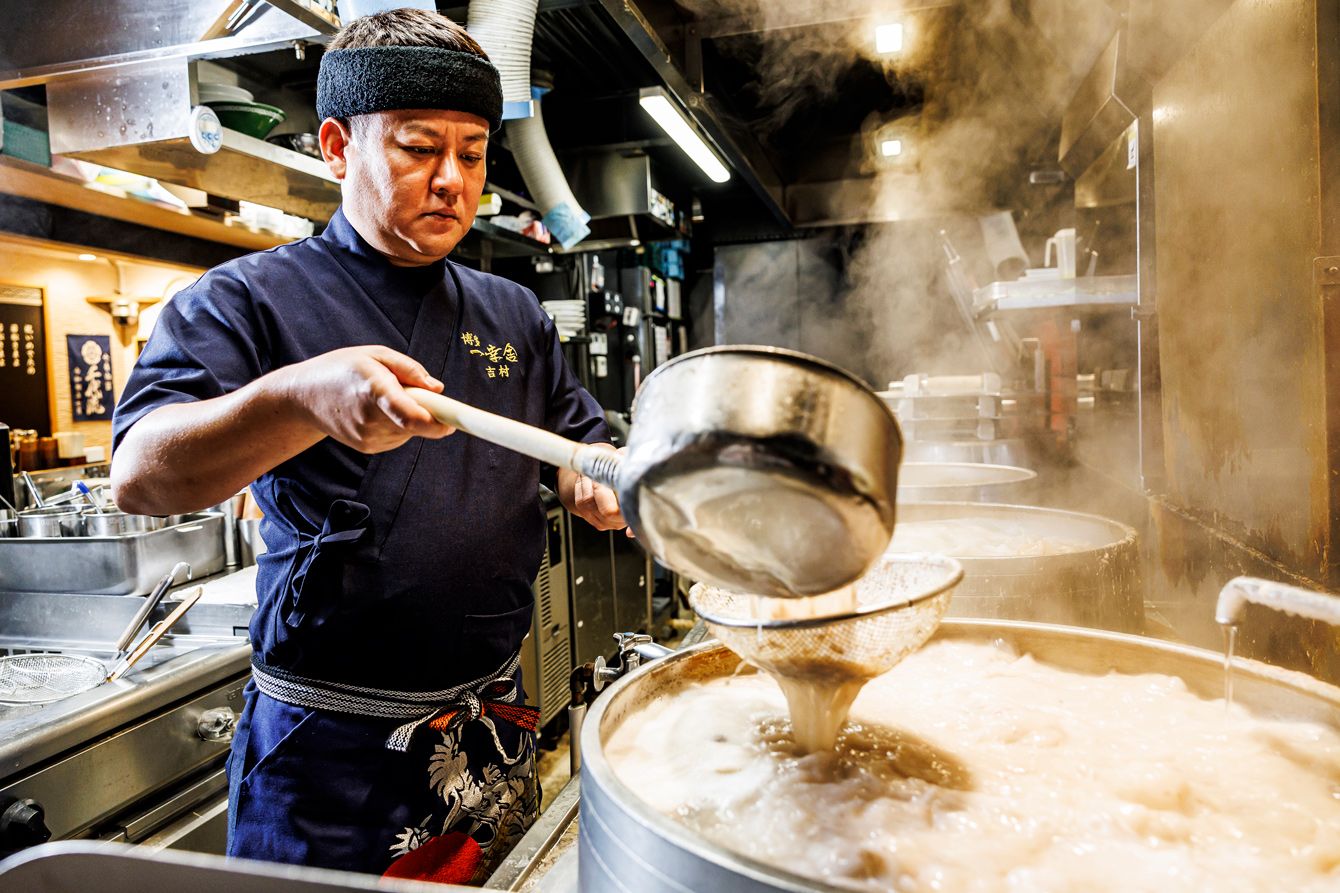 調理場に立つ吉村社長。アルバイトの中には「とんこつの臭いがついて仕事終わりにプライベートで出かけられない」と敬遠する人もいるのだとか