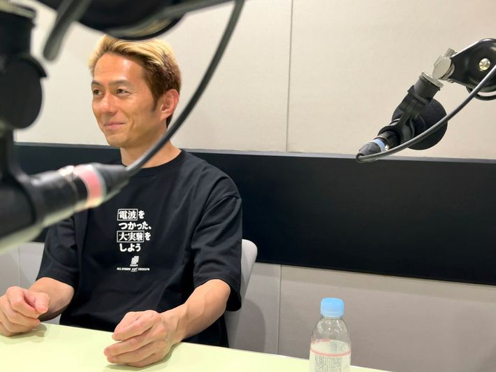 大出整社長のインタビューは、CROSS FM本社スタジオ内で行われた