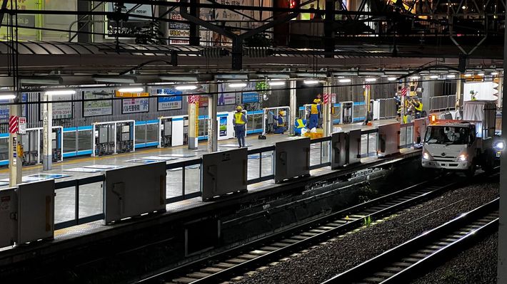 京浜東北線大井町駅で、2024年6月5日未明に行われたホームドアのメンテナンス工事