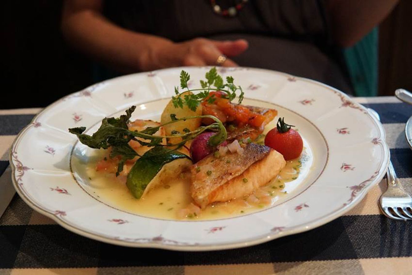 メインディッシュに魚貝3品のソテーを選んだプリフィクスコースのフレンチディナーが税込みで3,000円以下