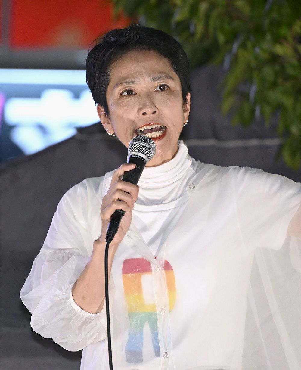 2024年7月6日、新宿で最後の訴えをする蓮舫氏