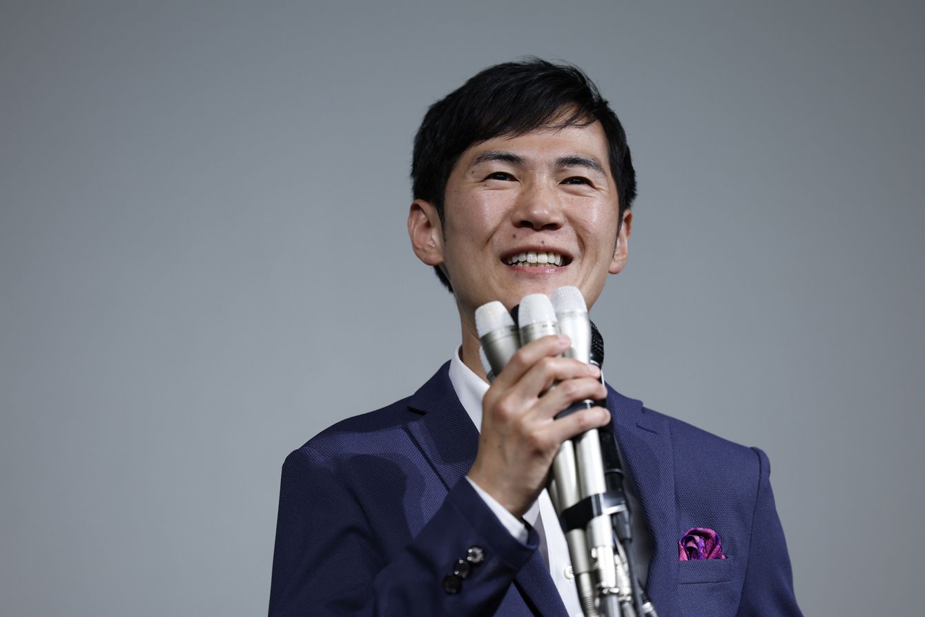 落選が決まった後、支援者らの前で発言する石丸伸二氏=2024年7月7日、東京都新宿区