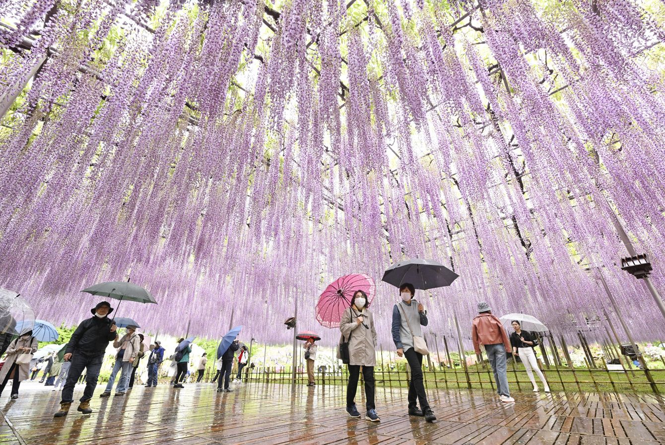 栃木県足利市の「あしかがフラワーパーク」で、見頃を迎えた樹齢約160年の「大藤」。=4月26日午後