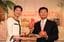 2010年5月30日、楊秋興・高雄県県長(当時)が東京都内のスーパーで台湾フルーツをPR。同日夜、麹町のホテルで開かれたパーティーに、蓮舫・参議院議員(左)も駆けつけた(写真=小興 蠟筆/CC-BY-SA-2.0/