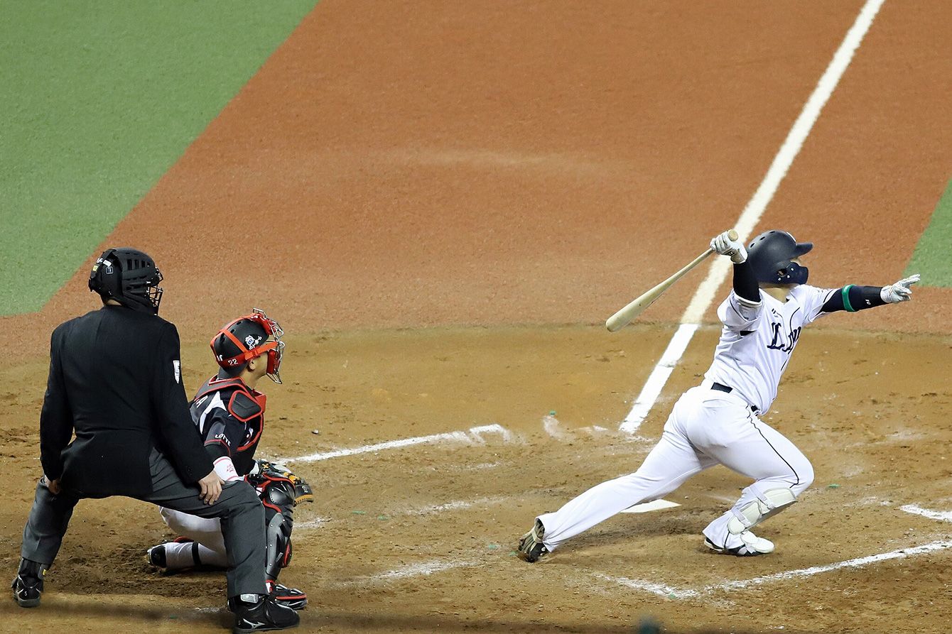 森友哉のダイナミックな打撃(写真=Jeffrey Hayes/CC-BY-2.0/