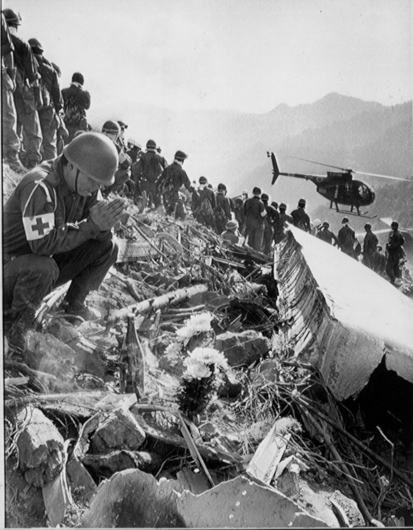 助かったのは女性4人だけだった(山肌を焦がし散乱する日航ジャンボ機の主翼部分、1985年8月13日)