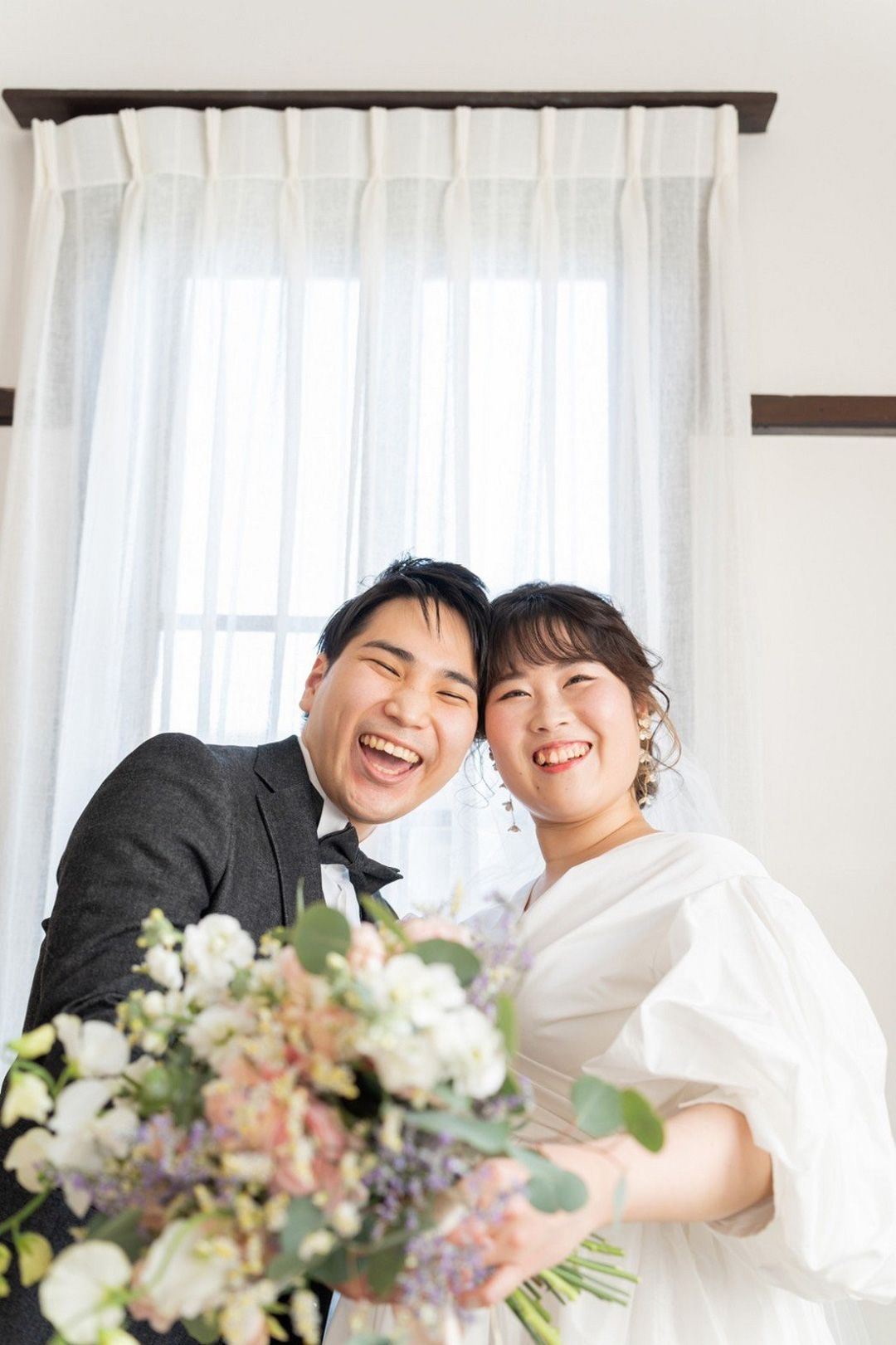 取材の日に二人が着ていたおそろいのTシャツは、入籍して1年の記念日となる5月1日に誠樹さんが用意したもの。「“うちの嫁”って言いたいんですよね。こんなに素敵な人と結婚できたんです、自慢の妻ですってアピールしたい」(誠樹さん)(撮影/大谷百合絵)