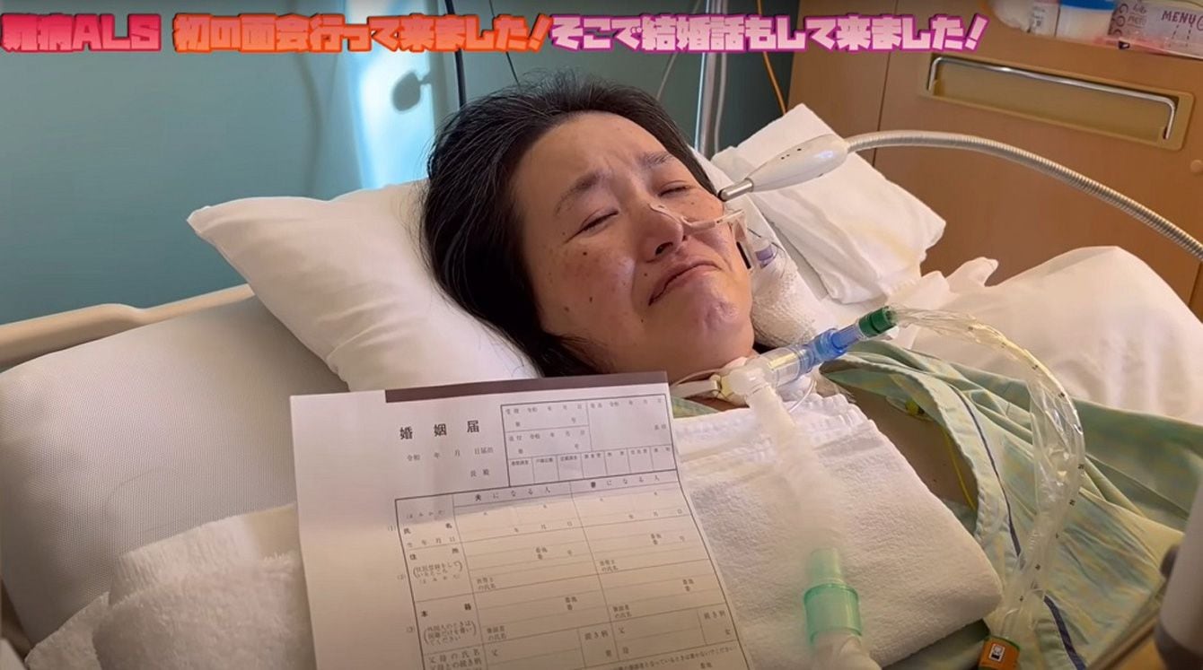 翔さんに婚姻届けを差し出され、泣き笑いの表情を浮かべるなつみさん(写真:YouTubeチャンネル「M’s channel」の動画から)