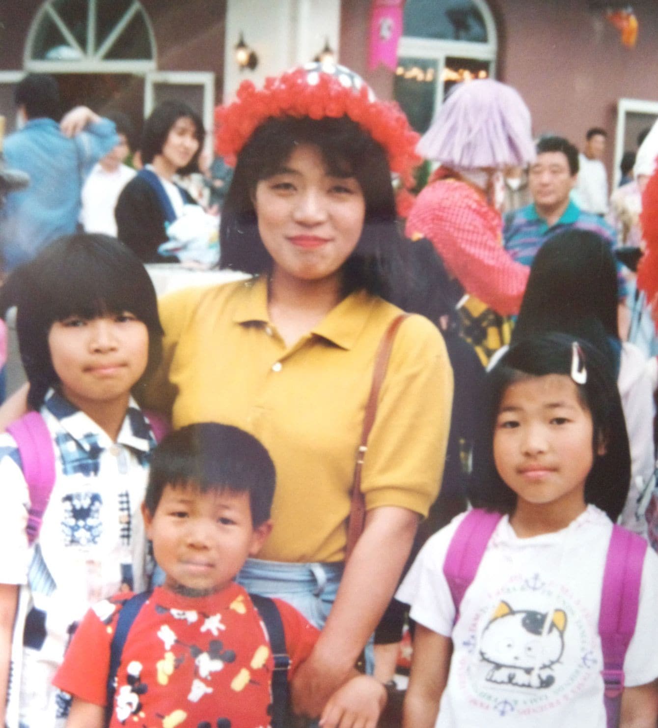 子育て中の田中さん。3人の子どもたちと(本人提供)