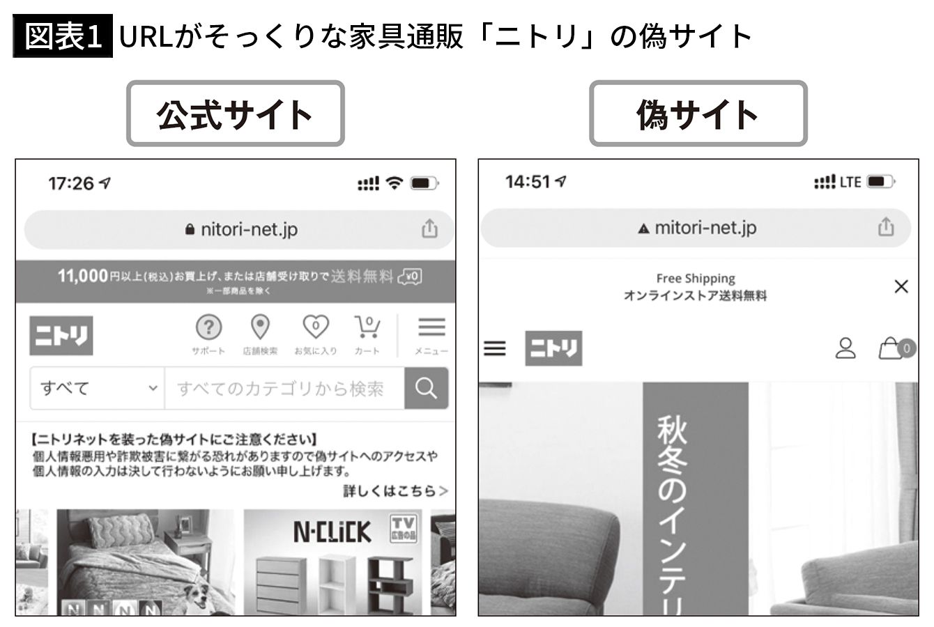 nitori(ニトリ)がmitori(ミトリ)になっている…本物そっくりの「偽サイト」に誘導する犯罪集団の姑息な手口