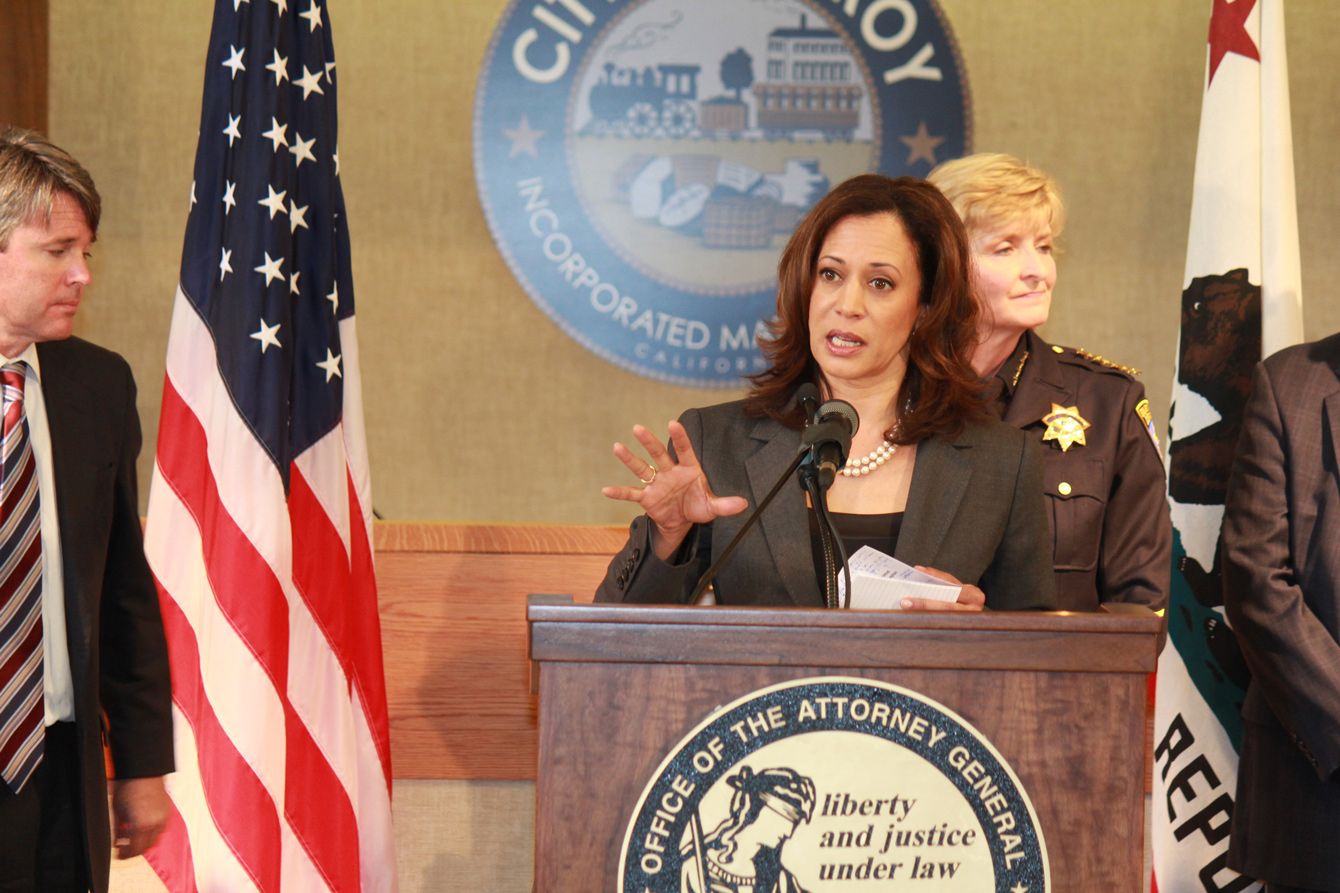 2011年10月14日、カリフォルニア州司法長官としてコメントするカマラ・ハリス氏(写真=Office of the Attorney General of California/PD-US-GovEdict/