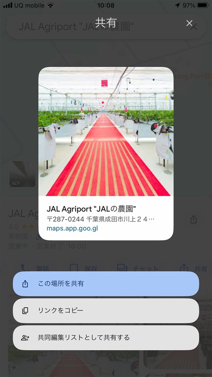Googleマップでなければ探せないスポットは、「この場所を共有」で他のアプリへ転送できる