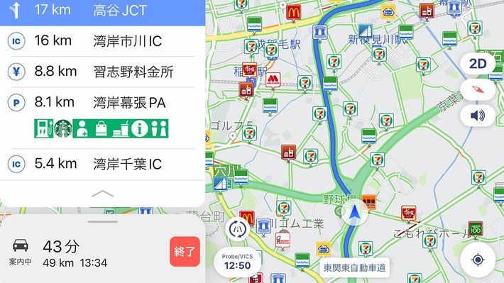 「Googleマップ」で目的地を検索。充電スポットをはじめ、行きたい場所が即座に探し出せるのが大きな魅力