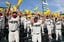 一関学院のスタンドで応援する生徒ら=2022年8月6日、甲子園