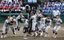 第105回全国高校野球選手権大会で107年ぶり2度目の優勝を果たし、喜ぶ慶応ナイン=2023年8月23日、甲子園