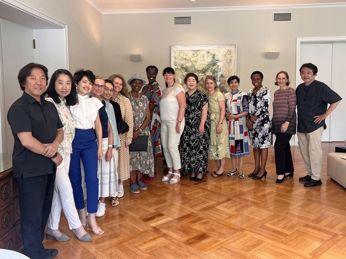 10年前から、駐日大使や大使夫人によるコーラスグループも主催している。写真はドイツ大使館での活動の様子。左から3人目がコロンさん(写真=本人提供)