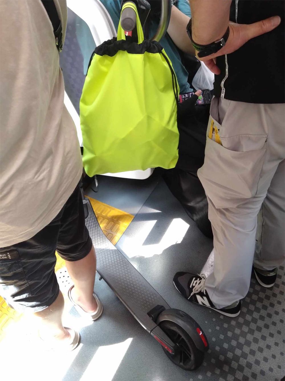 【写真2】混雑した車内でも電動キックボードを折りたたまなかった