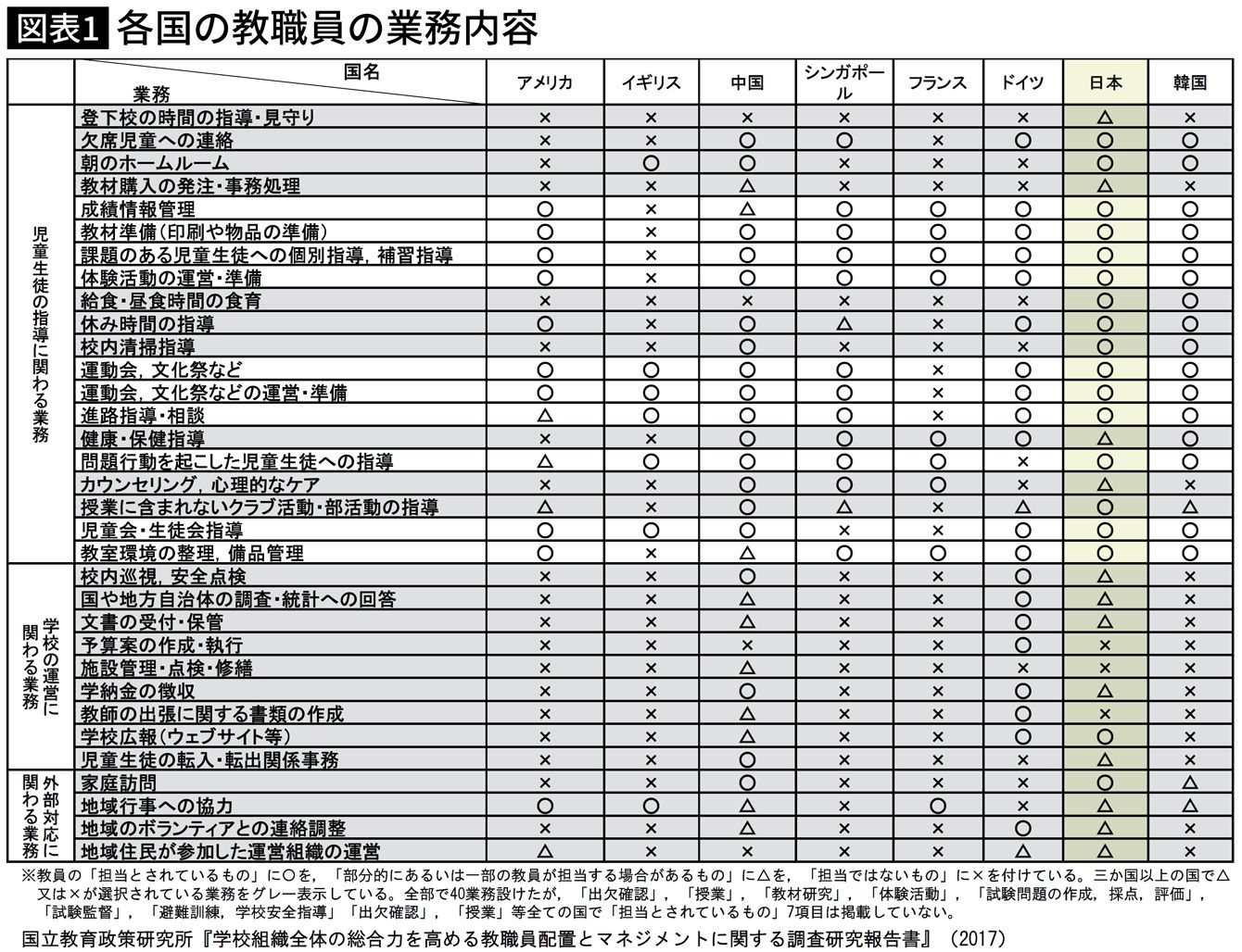 日本と違い、アメリカやヨーロッパ、シンガポールでは教職員が給食時間の食育や校内清掃指導を行わない(出典:文部科学省資料「