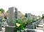 鹿児島県内の墓地で。どの墓にも生花がお供えされている。