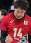 バレーボール男子準々決勝で得点を喜ぶ石川祐希=2024年8月5日、パリ