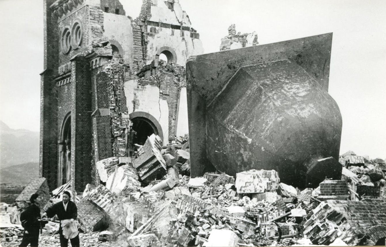 原子爆弾によって倒壊した浦上天主堂、1946年1月7日(写真=相原秀次/PD-Japan-oldphoto/