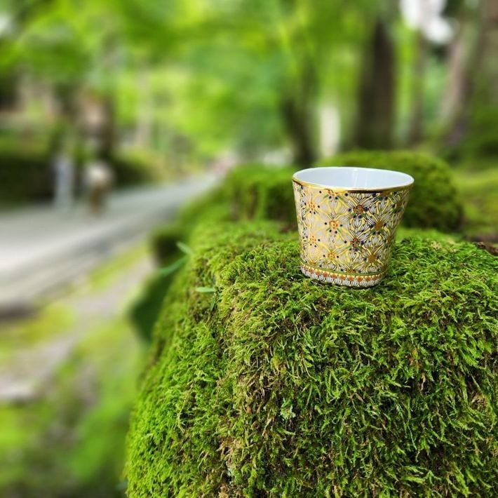 色彩豊かで絢爛なベンジャロン焼。草花の絵柄を幾何学模様のように細かく絵付けするのが特徴だ